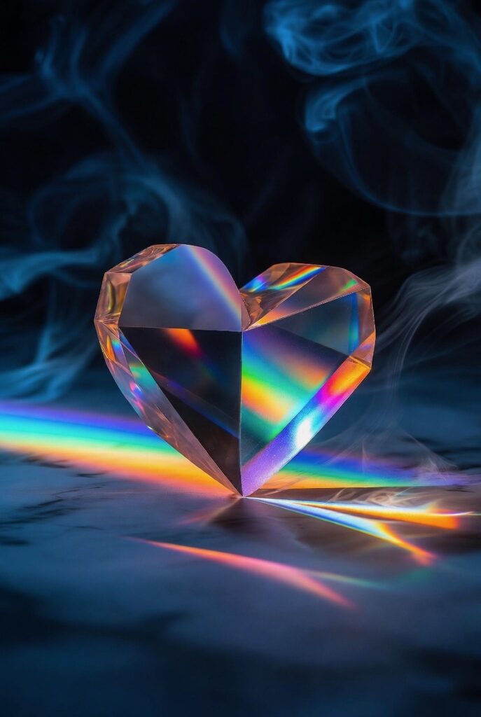 Prism Heart represents the power of emotion to shine in every direction. Just as a prism takes a single beam of light and turns it into a spectrum of color, the heart transforms experiences, love, and pain into something beautiful—radiating feeling that captures attention and connects people.